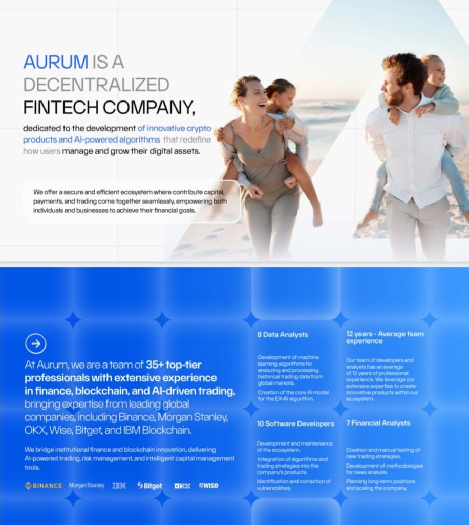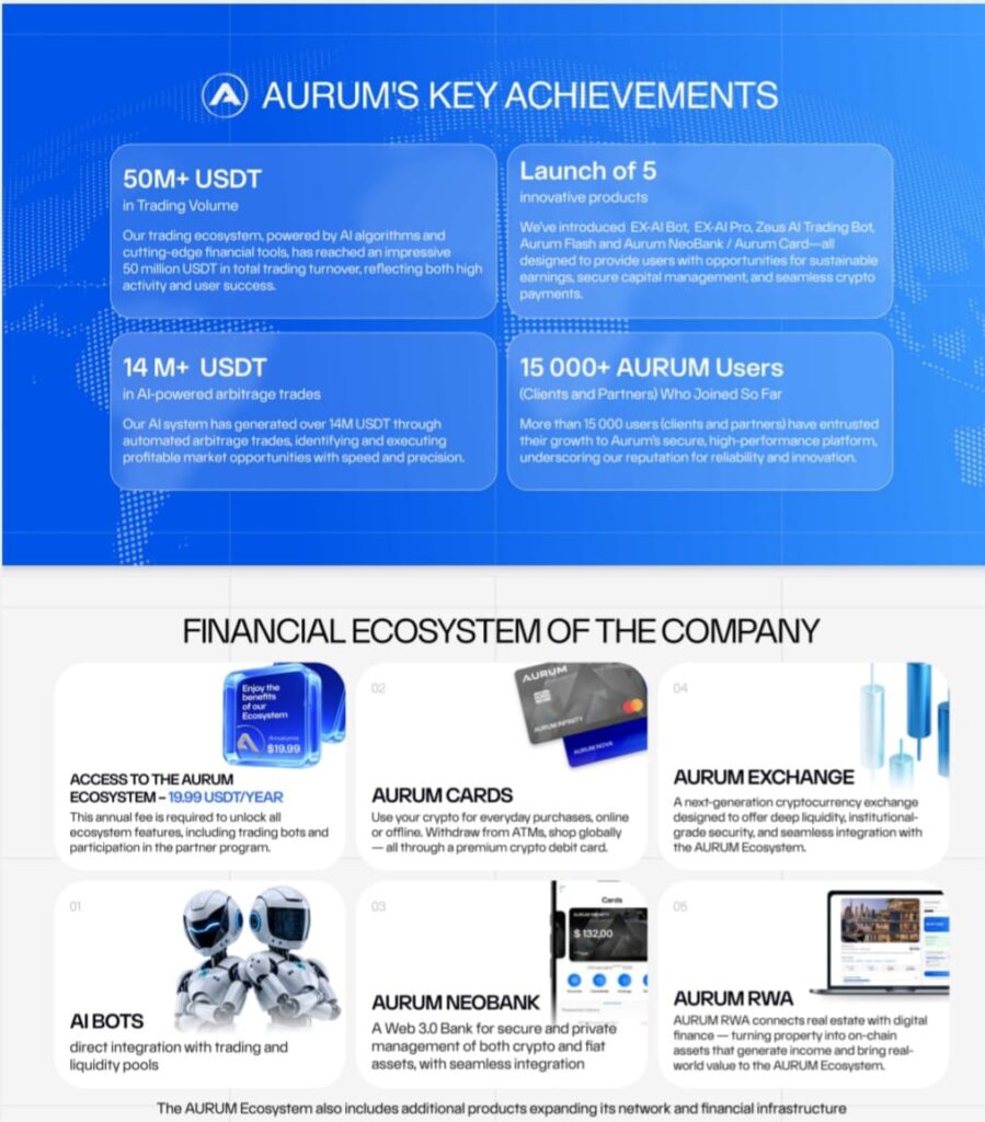 “AURUM stands at the forefront of decentralized fintech, successfully bridging the gap between institutional finance and the crypto economy. Driven by a powerhouse team of over 35 experts from industry giants like Binance, Morgan Stanley, and IBM, AURUM has deployed a fully operational ecosystem featuring AI-powered trading bots, a global crypto-fiat card program, and a secure neobank interface. By combining blockchain innovation with real-world utility, AURUM empowers users with seamless global payments, real-time asset control, and institutional-grade wealth management.”